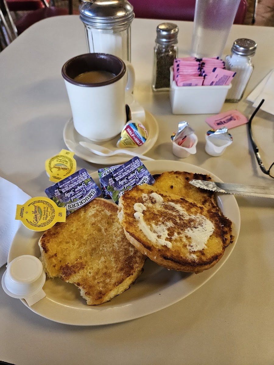 Food was delicious and did get good table service. But unfortunately when we wanted to pay for a plate to go separately, the lady at register was visibly annoyed at this request. She was rushing through what was what on waitress ticket, saying what was being charged and I was surprised at final cost. Make sure to ask if your not local on cost if the items and what is included on plate ordered. Any changes added to bill. Food was great, but unfortunately the way they handled the separate bill request, we will look elsewhere for breakfast all day restaurant.