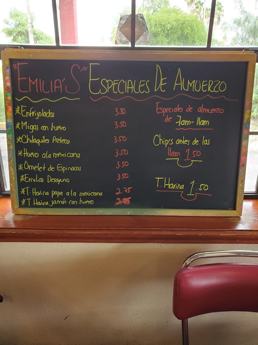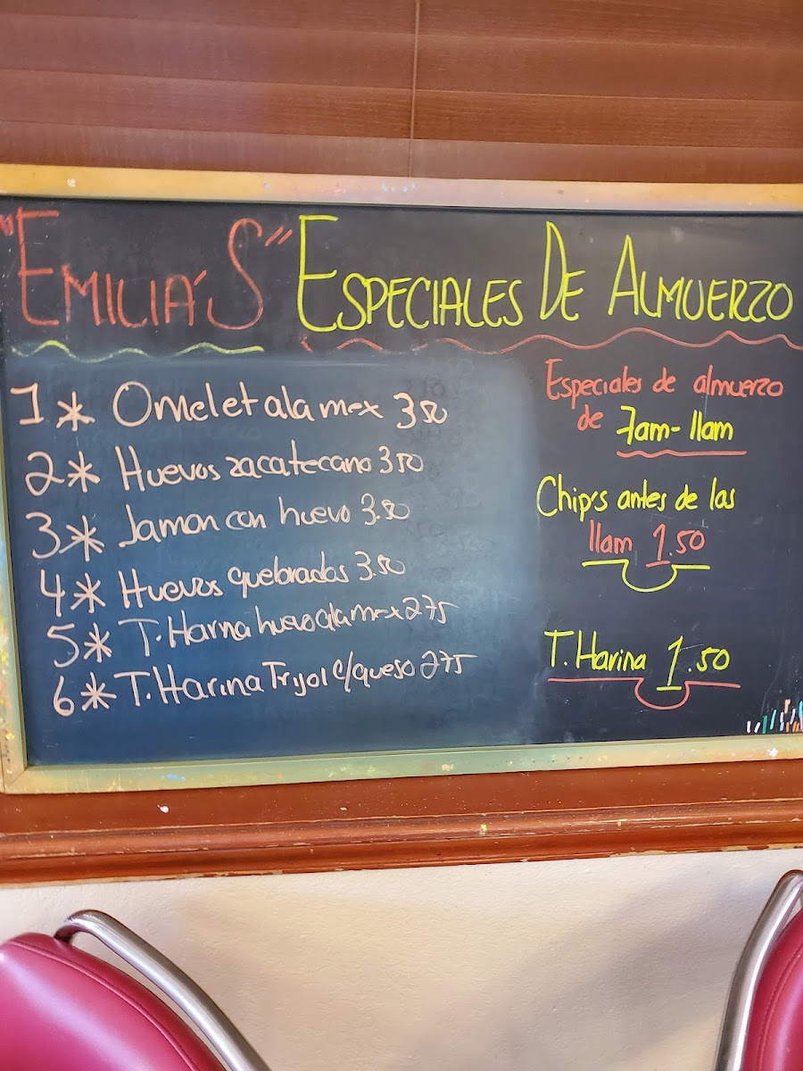 Emilia's Restaurant Menu